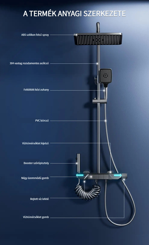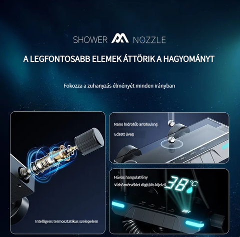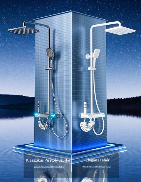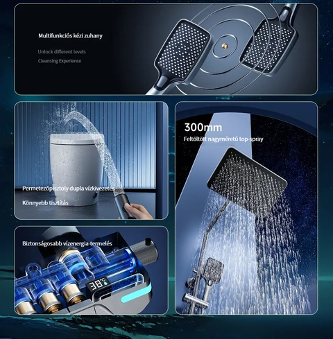 A víz hőmérsékletének valós idejű kijelzése a leforrázás elkerülése érdekében ~ A zuhanyfej egy emlékeztetővel van ellátva, a víz nagy és sűrű, a fürdő olyan, mintha egy gyógyfürdőben ülne, nem a hagyományos gomb a víz üzemmódjának átállításához, ez egy z